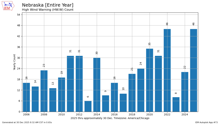 As of Dec. 30, there were 46 high wind warnings in Nebraska in 2025, including ones that were part of the two storms in March and August, according to the National Weather Service. That count ties the record high since the agency started keeping track of that statistic 20 years ago. This year’s winds have taken down utility poles, destroyed roofs, spread wildfires and toppled many trees. And the impact has been felt by taxpayers, property owners and utility customers.