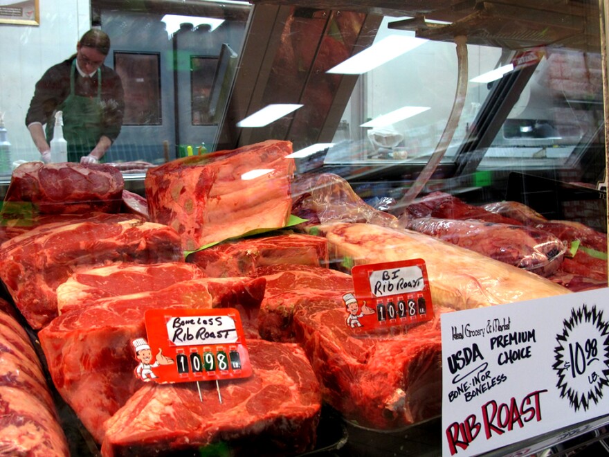 Like many grocers, Rob Toy, meat manager at Ideal Grocery in Lincoln, Neb., tries to avoid raising prices. Wearing a green apron and black tie, Toy fired up the meat saw to slice rib roasts, selling for $10.98 per pound, as shoppers browsed his meat case on a recent day. Like other cuts of beef, the price has been steadily creeping up.