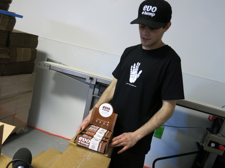 Sherman’s company is built on Canadian hemp. The seeds and protein powder are in each bar he sells. He’d like to start buying hemp from American growers, but right now no one’s growing on a large scale. That leaves businesses like Sherman’s caught in a bind. They like to market themselves as environmentally friendly, but are forced to ship hemp from China, Romania, Ukraine and, of course, Canada.