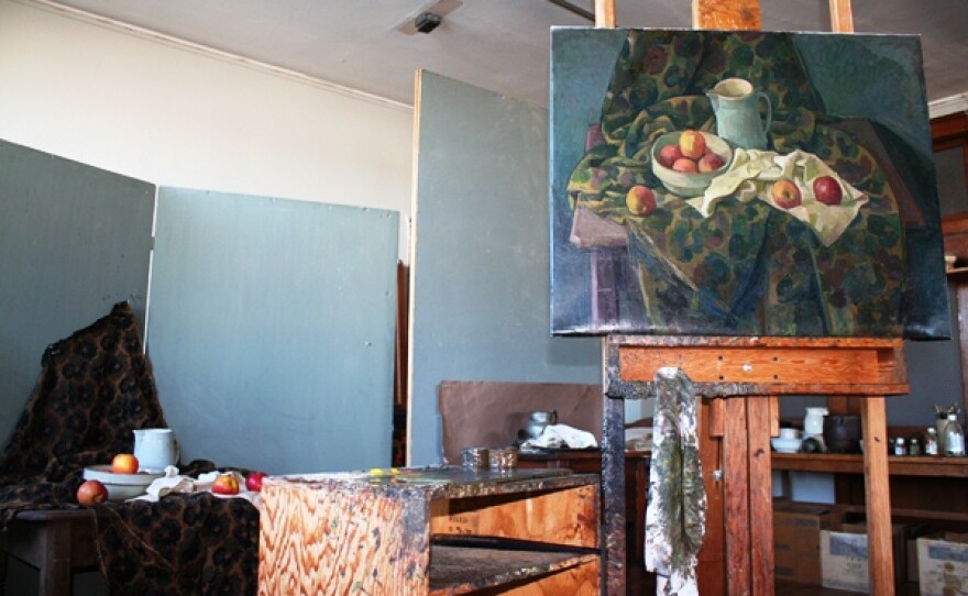 Niewald's studio at the Livestock Exchange Building in the West Bottoms is filled with canvases from early abstract works from the 1950s to works - a still life and a self portrait - still in progress.