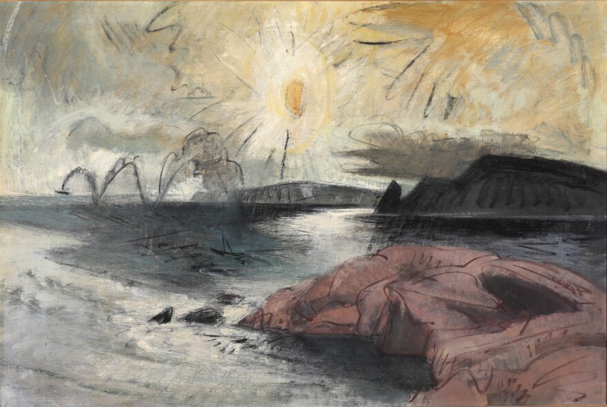 By the late 1940s and '50s, Jones was making lyrical landscapes, peaceful boats in placid harbors.