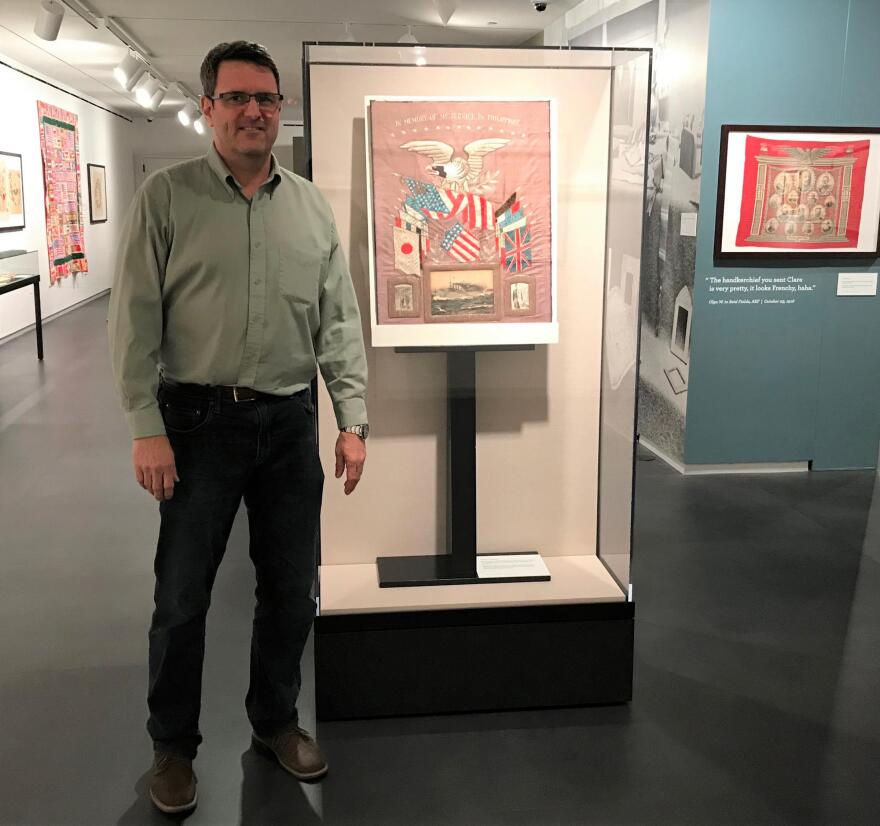 Cart says about 60 items are included in the exhibition "Color of Memory: Fabric Art of WWI." Some pieces, like Jensen's, originated abroad, in Great Britain, the Netherlands, France, Russia, Belgium, Germany, and Japan, while other pieces, like the quilts, are domestic.