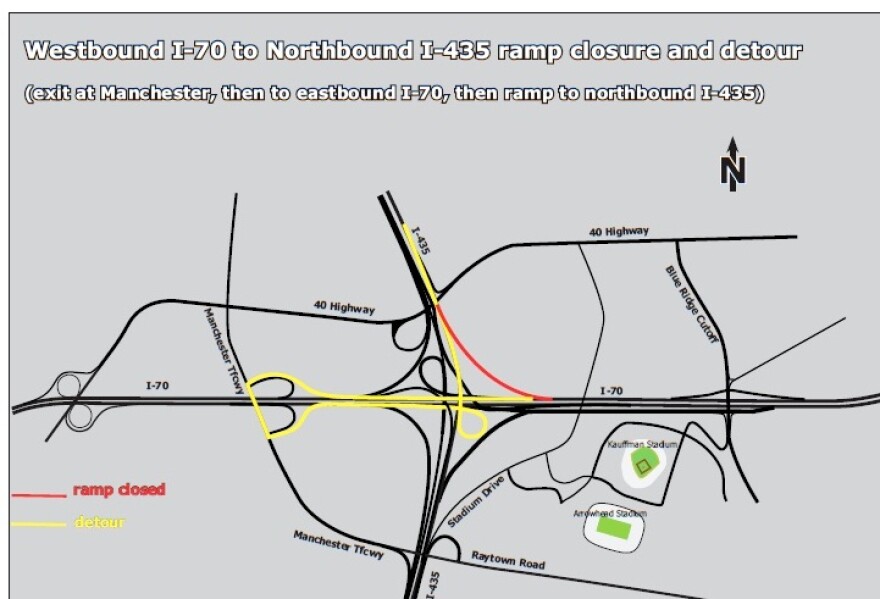 He said motorists are going to have to detour West on I-70 to the Manchester Trafficway off-ramp. Then  drivers will turn left under I-70 to the Manchester on-ramp and then go Eastbound I-70. Porter said the last leg of the relatively short detour will take drivers Northbound to the 435 ramp.