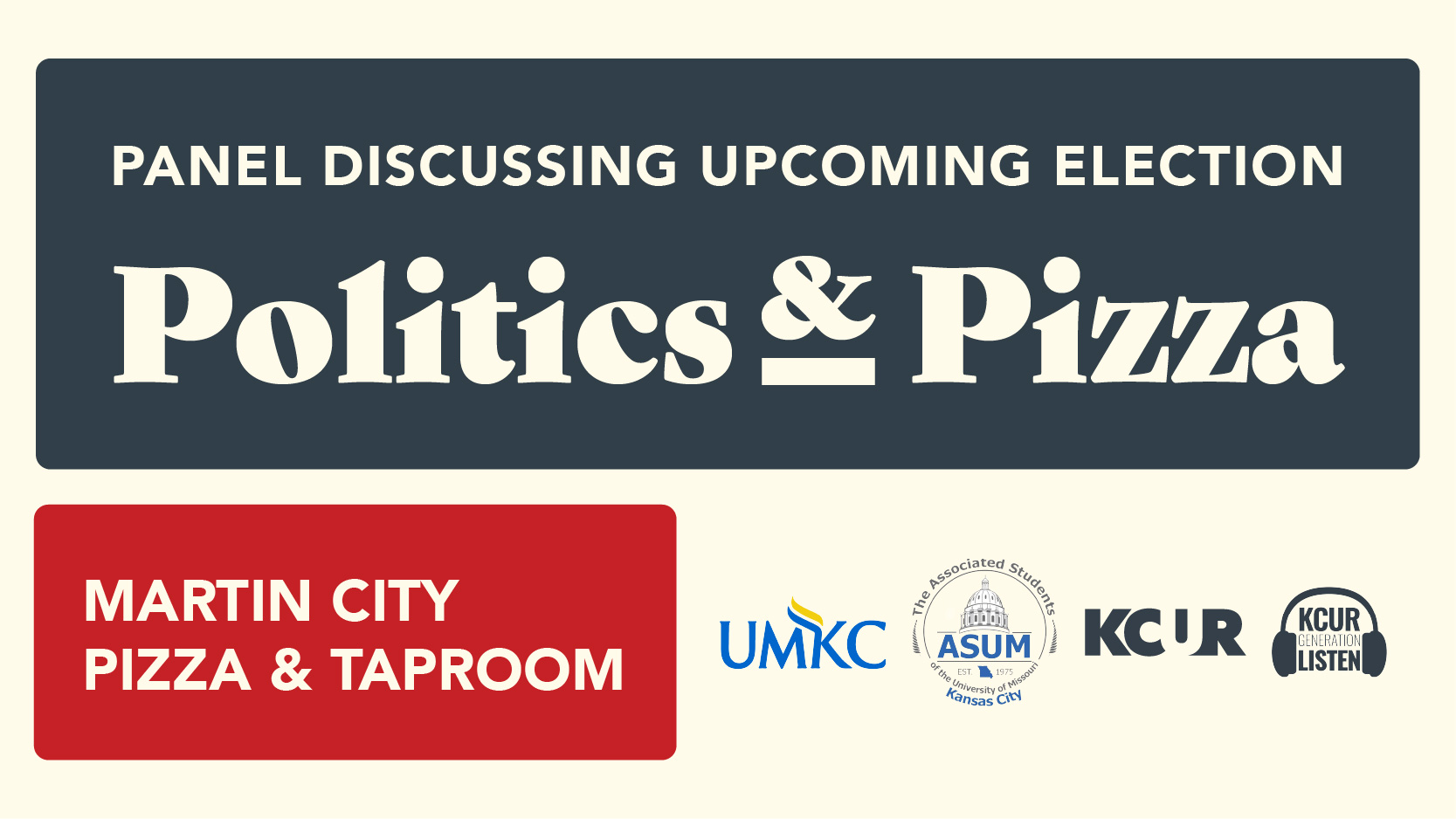 Join KCUR’s Generation Listen, UMKC, and the Associated Students of the University of Missouri–Kansas City (ASUM) for an evening of real talk about the issues that matter, especially to students navigating their first (or next) election season. Find more info here.