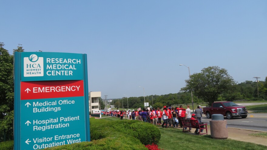 A couple hours later, many of the demonstrators re-assembled in front of Research Medical Center, where members of the Service Employees International Union are currently in contract negotiations.