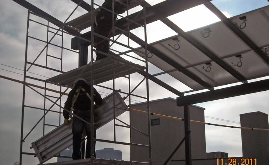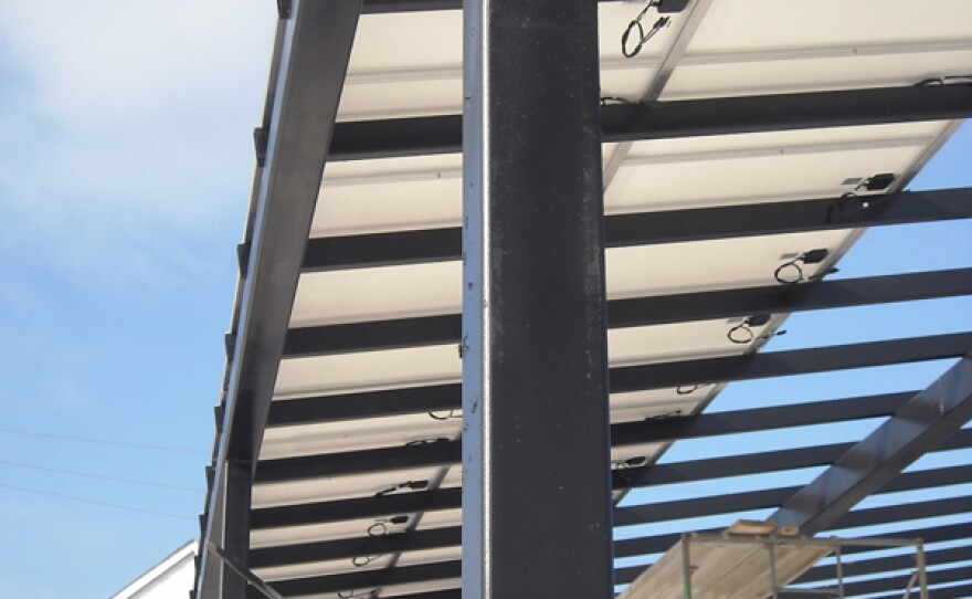 For the second half of this Thursday's Central Standard, David W. Bland of Travois Holdings and Andy Homoly of Solar and Wind KC join us to talk about their exciting up-and-running solar energy system. The system will provide all of the annual electricity needs for Travois Holdings' office at 310 19th Terrace in the Crossroads Art District. One of the unique aspects of the project is bed for the solar panels, a steel canopy structure which shades a planned outdoor living space. The amount of energy produced will save the emissions of an average car driving nearly 235,000 miles.